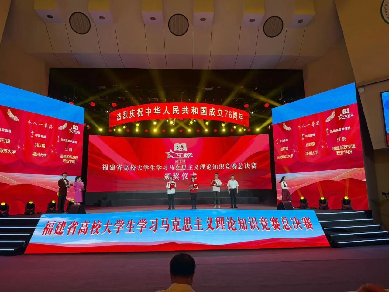 9月28日,由中共福建省委宣传部和中共福建省委教育工委主办的第十季福建省高校大学生学习马克思主义理论“一‘马’当先”知识竞赛总决赛在福建农林大学举行。经过激烈角逐,我院蔡可捷同学摘取研究生组个人一等奖的桂冠,刘芊芊同学荣获研究生组个人二等奖,王洁同学荣获本科生组个人二等奖。