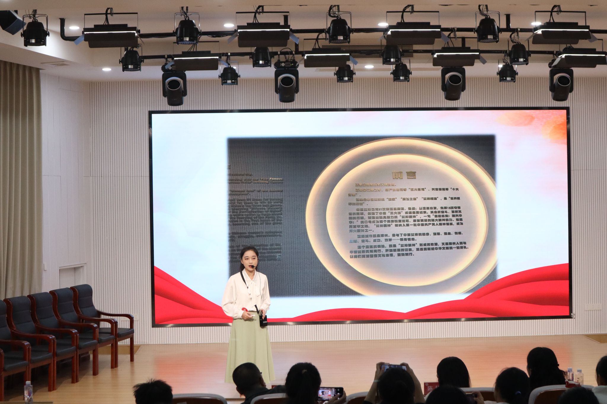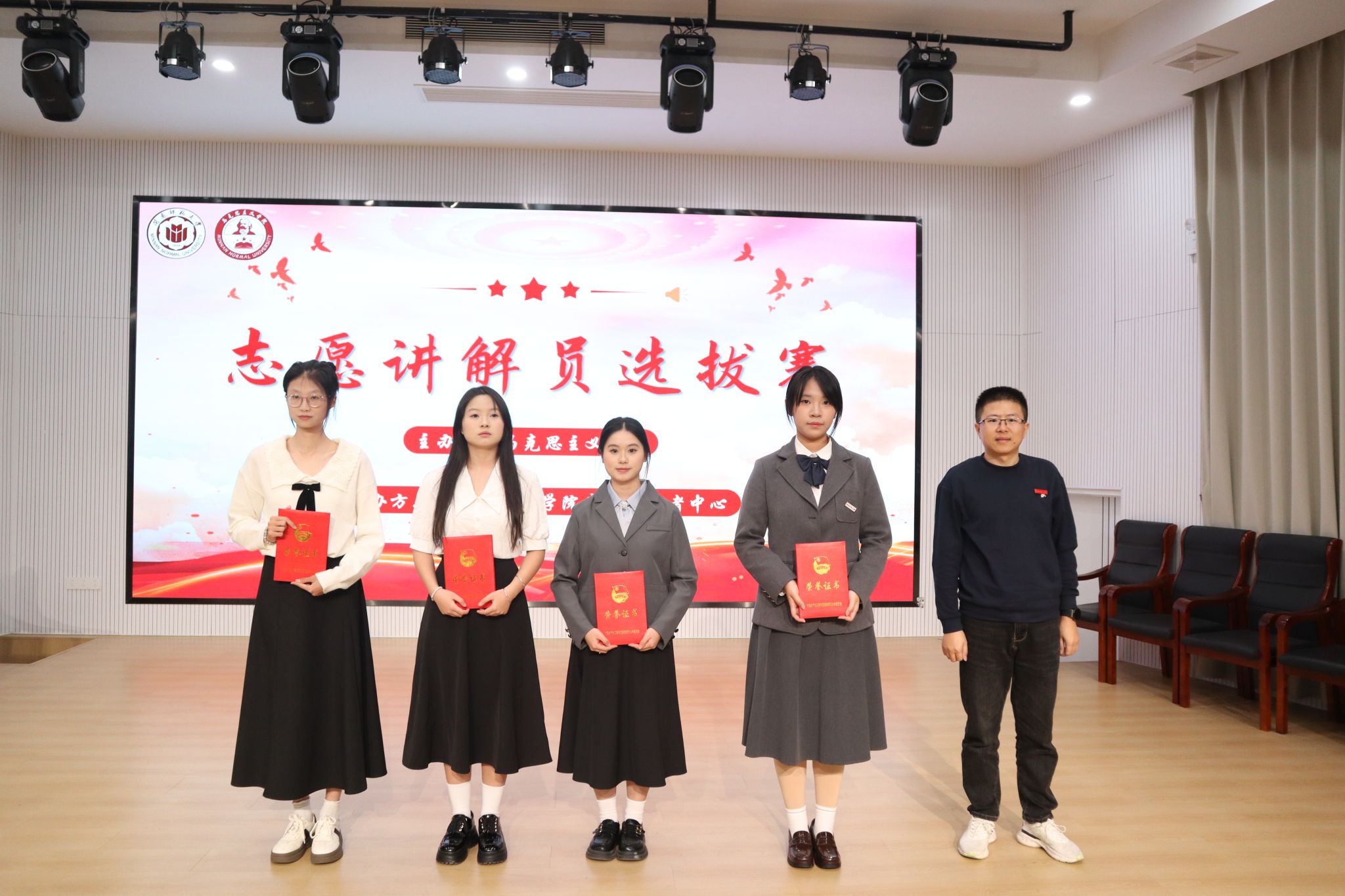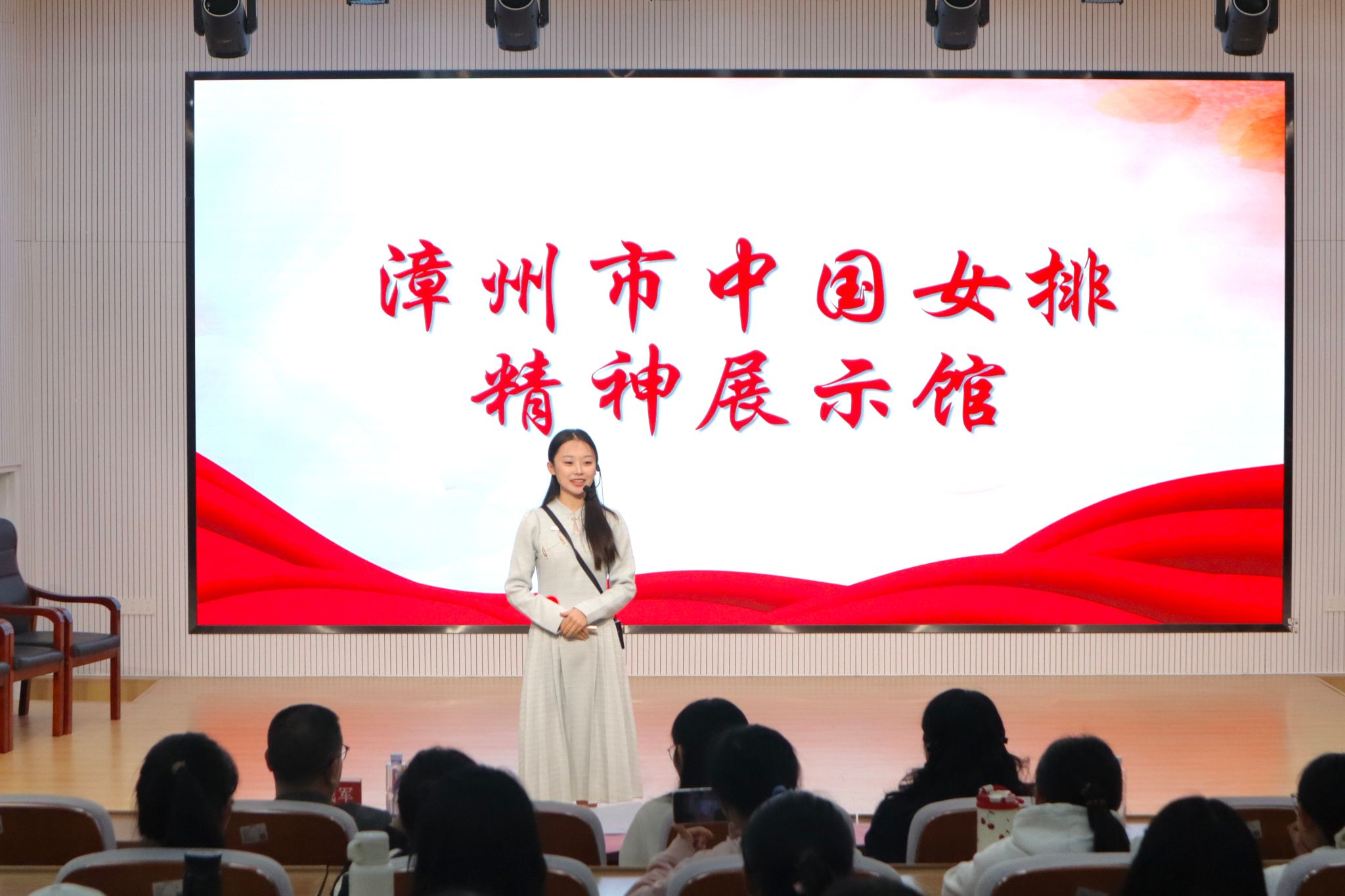 为积蓄奋进力量,传承拼搏精神及家国情怀,11月26日晚,我院于东门马院礼堂举办第二届红色文化志愿讲解员选拔赛。比赛邀请漳州中国女排精神展示馆展陈部主任黄专楠、校党委宣传部陈秋燕老师、校办公室汪先平老师担任评委,我院党委副书记邓战军老师出席,25级本科生蒋明芳、黄雨萱主持。