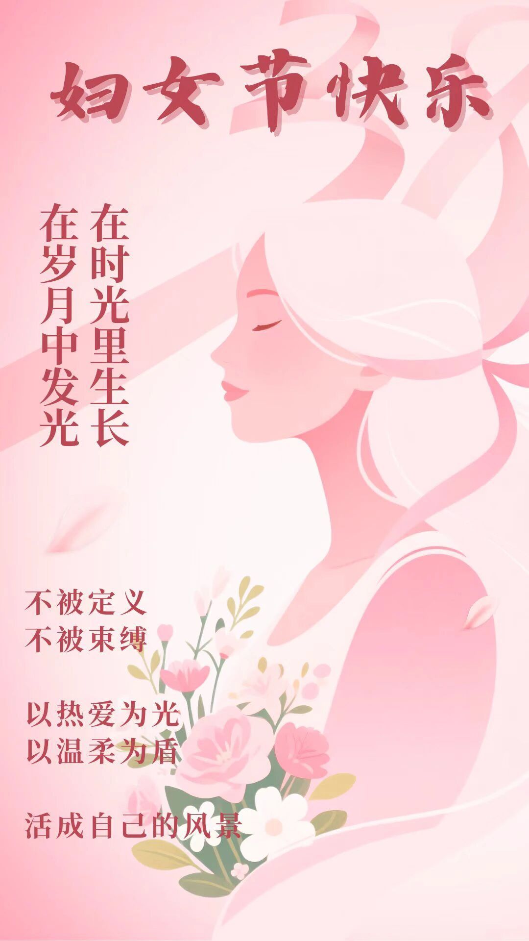 时光不语,镌刻不凡力量,岁月沉香,书写温柔担当。致敬每一位闪闪发光的女性,致敬每一份不被定义的勇敢,致敬每一个在平凡日子里向阳而行的你。愿你眼里有光、心中有暖,不卑不亢,清澈善良;愿岁月温柔以待,平安喜乐,万事胜意。值此三八妇女节,衷心祝愿所有女性:芳华自在,笑靥如花,岁岁常欢愉,年年皆胜意。