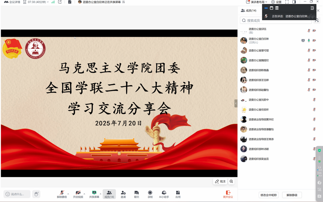 为深入学习贯彻全国学联第二十八次代表大会精神,我院于近期组织各班级、各学生组织通过线上形式召开专题学习会。