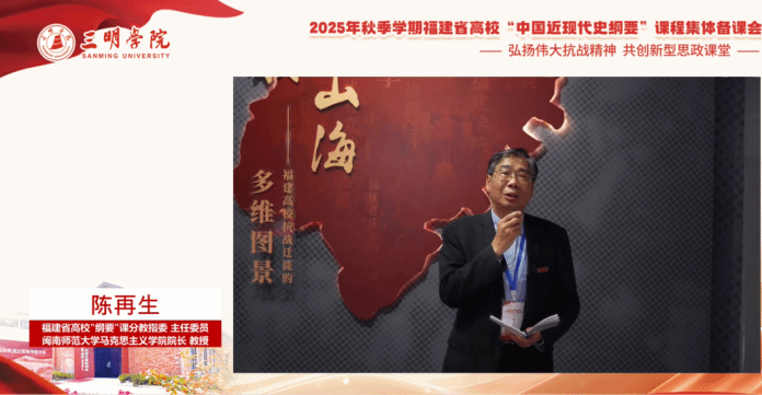 2025年12月13日至14日,我院联合三明学院马克思主义学院等单位承办福建省高校“中国近现代史纲要”课程集体备课会。本次集体备课会在三明学院举行,会议以“弘扬伟大抗战精神 共创新型思政课堂”为主题。省内外110余位专家学者与教师代表参会,同时备课会还通过教育部思政课教师网络集体备课平台同步直播。