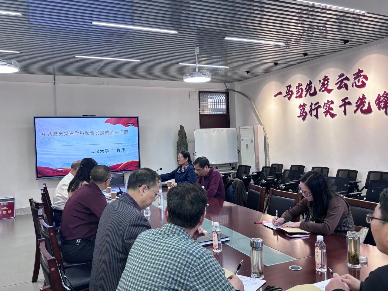 丁俊萍教授围绕中共党史党建一级学科建设的历史基础、现实逻辑、学科建设突破点等展开深入讲解。她指出该学科虽建制时间短,但作为学术研究领域与党校课程体系中的“党史”与“党建”,二者在党的幼年时期几乎同步起步,在土地革命战争时期尤其是全民族抗日战争阶段形成较为成熟体系,为一级学科建设筑牢基础;同时强调党史与党建学科在多方面高度同一,根源在于党的社会革命与自我革命的内在统一性,二者相辅相成决定了两门学科研究不可分割。她还结合学科发展现状,为推进中共党史党建学融合发展提出针对性思考,明确了学科建设的实践方向。