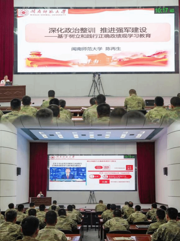 4月23日上午,马克思主义学院陈再生教授应邀为中国人民解放军73131部队党员干部作《深化政治整训 推进强军建设——基于树立和践行正确政绩观学习教育》专题报告。(通讯员 任程龙)
