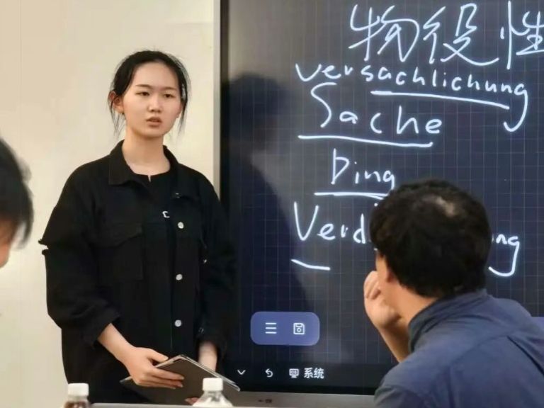 在讨论互动环节,围绕“这个巅峰上屹立着两位大师:经济学中的李嘉图与哲学中的黑格尔”,对“为什么说黑格尔的思想是资产阶级在哲学上的巅峰”和“李嘉图的‘看不见的手’与黑格尔的‘绝对精神’的理论同构性”问题进行探讨,提出多重解释视角,并据此延伸与马克思主义发展史等课程深度勾连。
