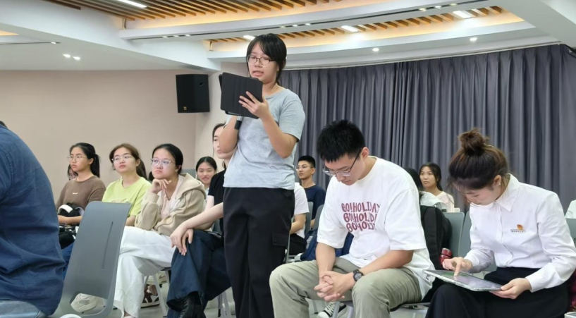 活动还围绕党的二十届四中全会精神和“十五五”规划实施建议开展了学习,并围绕“激发全民族文化创新创造活力,繁荣发展社会主义文化”展开了热烈讨论。 同学们结合自身专业背景,探讨了如何在新时代的文化建设中发挥青年力量。大家一致认为,唯有将个人实践融入国家文化发展战略,才能真正实现个体价值与社会价值的统一。 邓战军老师指出,在信息纷繁的当下,经典阅读是与先贤进行跨越时空的对话,是汲取智慧、辨识方向的精神灯塔。他勉励大家要坚持知行合一,以批判继承的态度研读经典,既深入汲取思想养分,又勇于结合实践进行创新,从而肩负起为繁荣发展社会主义文化贡献青春力量的时代使命。