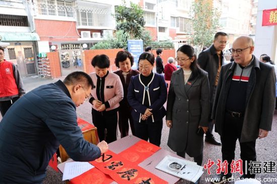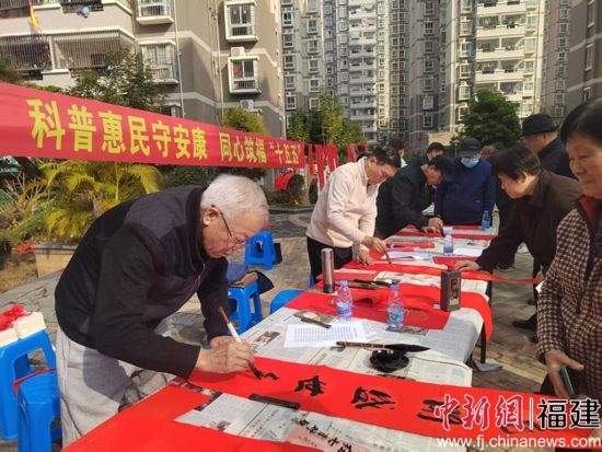 中新网福建新闻2月3日电(张宁 康哲力 张向丽)为迎接2026年丙午马年新春,传递新春美好祝愿,2月2日上午,闽南师范大学马克思主义学院携手学校工会、离退休干部管理处,联合芗城区芝山街道办事处、东浦头街道师院社区及漳州圆山医院,共同举办“翰墨迎春启新程 科普惠民守安康 同心筑福‘十五五’”迎新春义写春联暨科普进社区活动,以笔墨寄情、以服务暖心,为社区居民送上满满的新春祝福与民生关怀。闽南师范大学党委副书记、工会主席廖志丹到场指导。