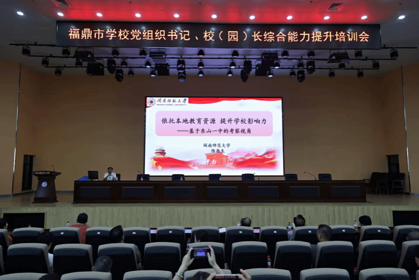10月15日,我院院长陈再生教授在东山一中进行的2025年福鼎市教育系统党组织书记、校(园)长综合能力提升培训班上讲授《依托本地教育资源 提升学校影响力——基于东山一中的考察视角》的专题报告。(通讯员 任程龙)