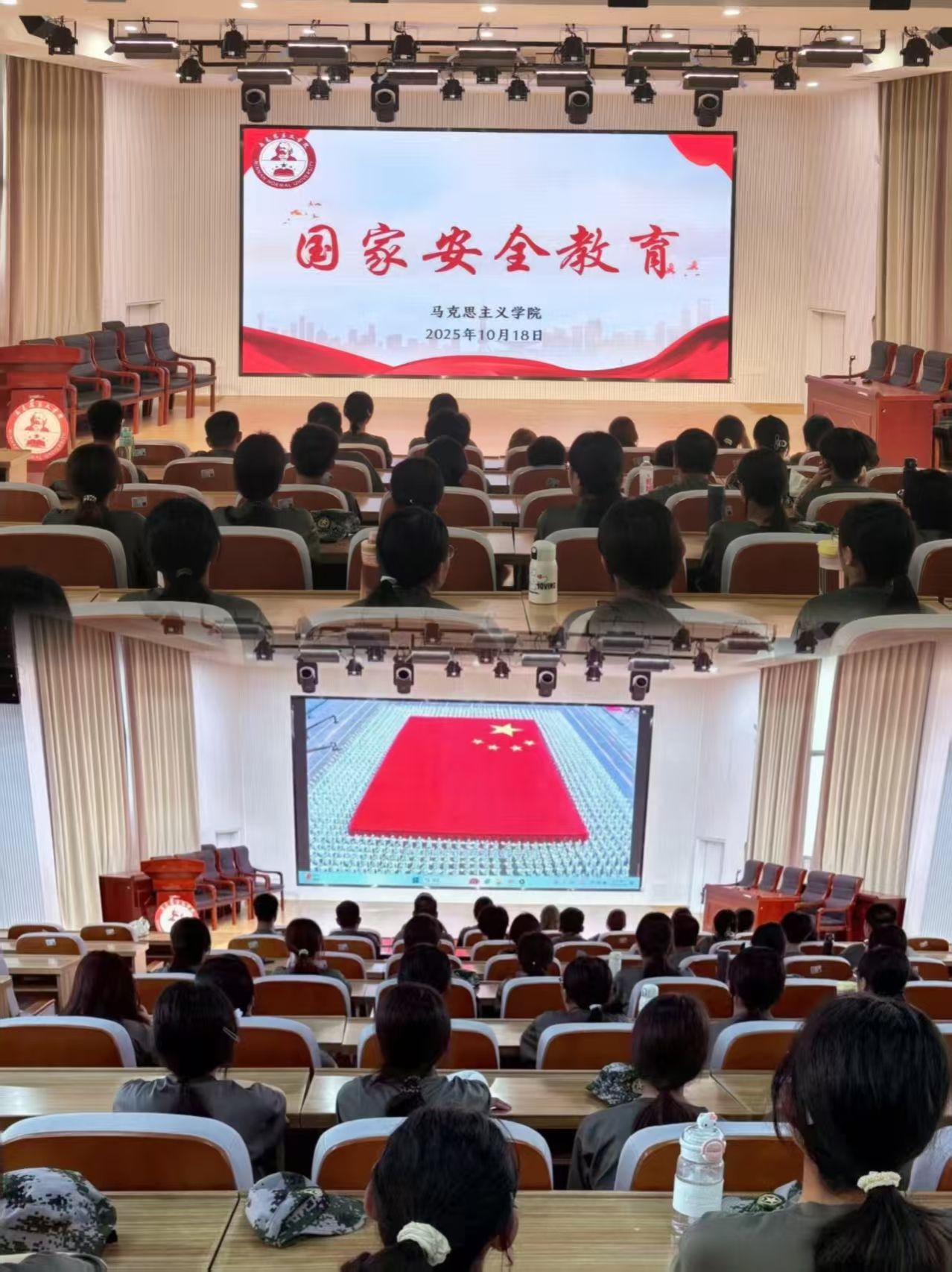 10月18日上午,我院在马院礼堂开展国家安全教育主题班会。2025级本科新生参与。(通讯员 沈书伊)