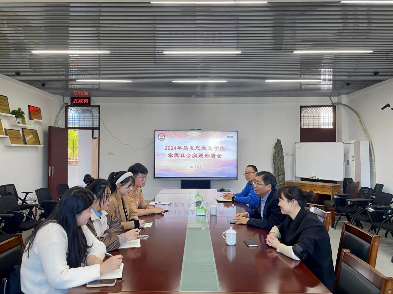 1月18日下午,我院于综合楼中区404会议室召开2024年寒假社会实践部署会,院长陈再生、校团委副书记童娟、研究生辅导员参加。(通讯员 张小敏)
